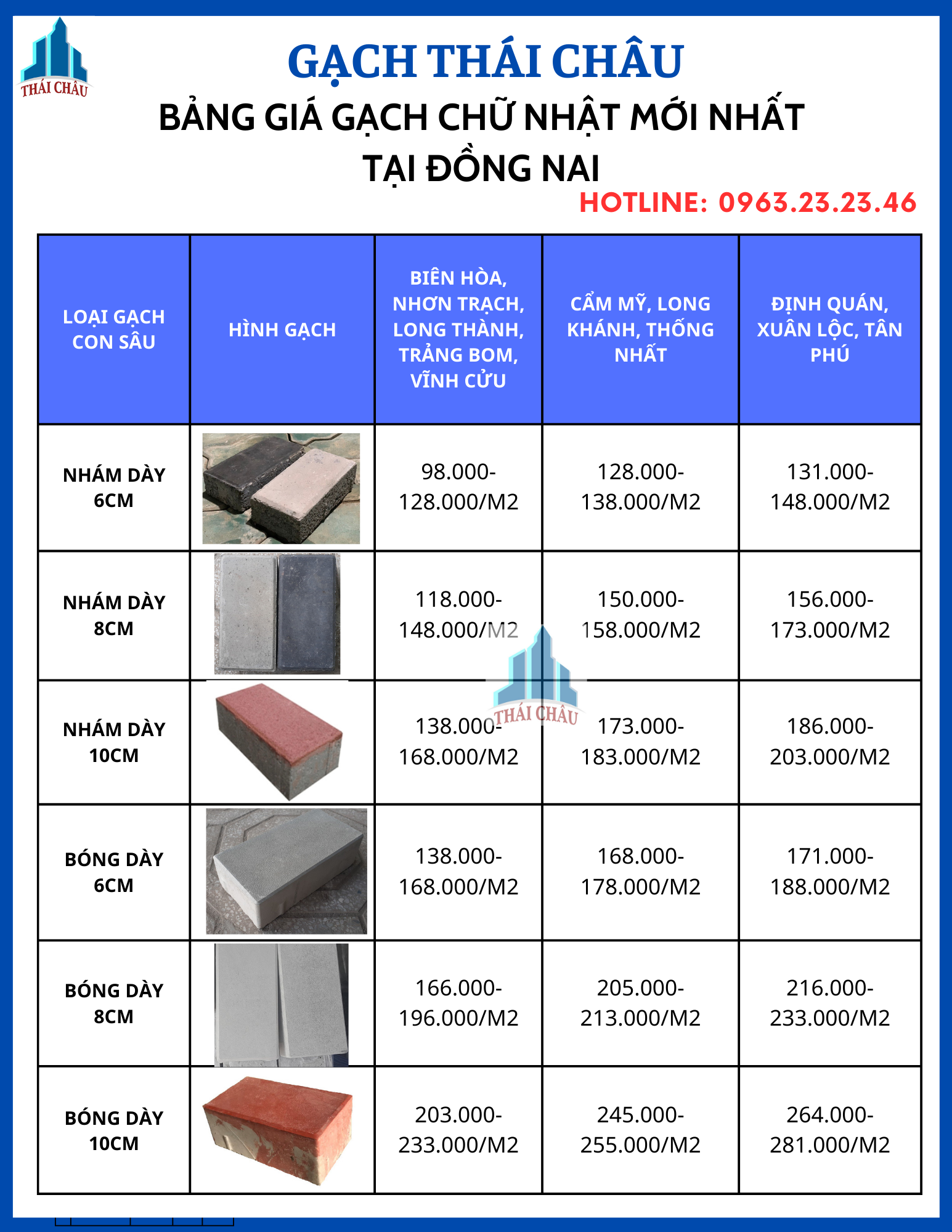 Bảng Giá Gạch Chữ Nhật Giao Tới Đồng Nai