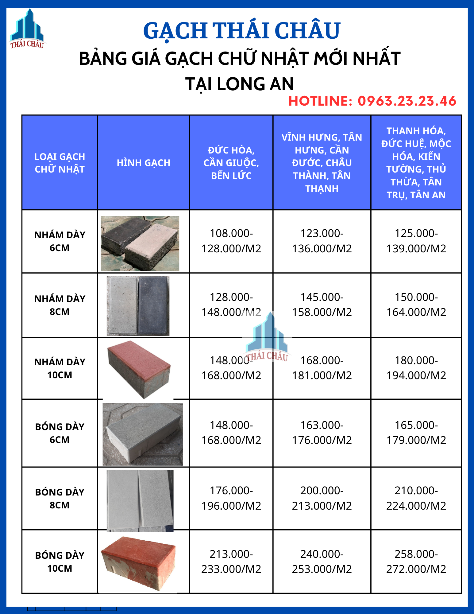 Bảng Giá Gạch Chữ Nhật Giao Tới Long An