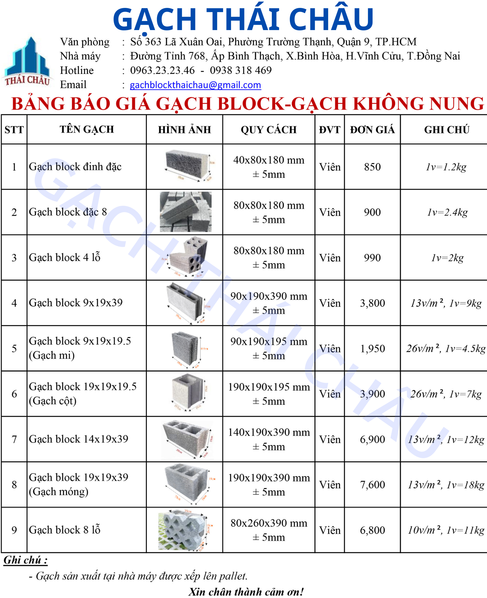 Báo giá gạch block tại Thái Châu Mới Nhất