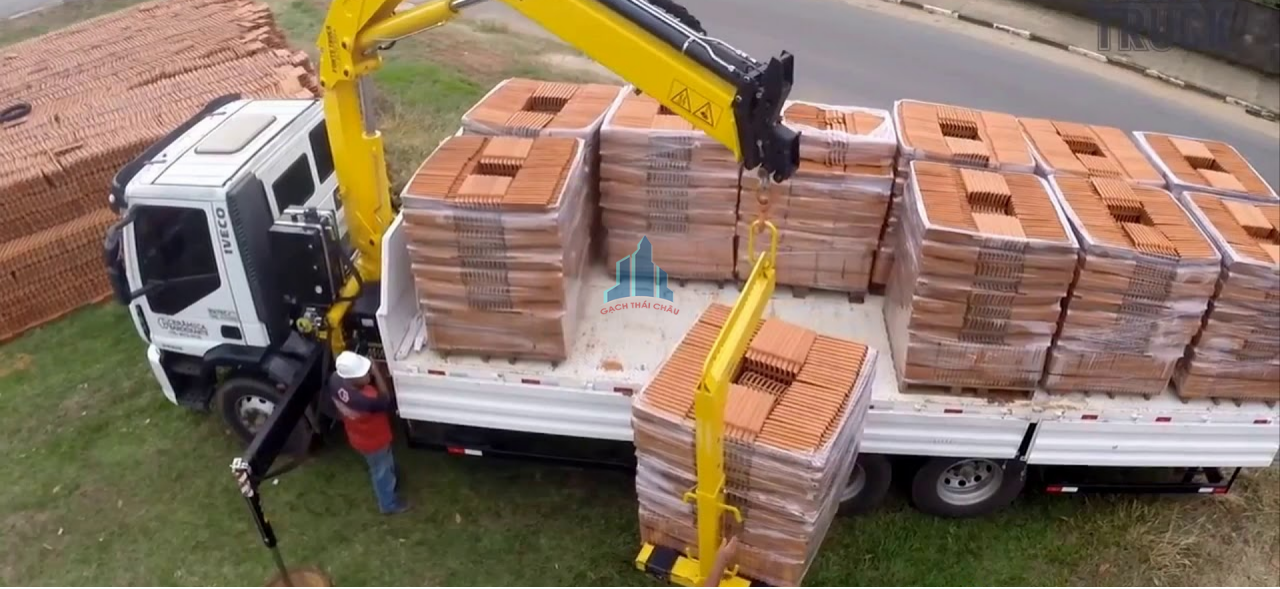 Giao gạch terrazzo bằng xe cẩu chuyên dụng