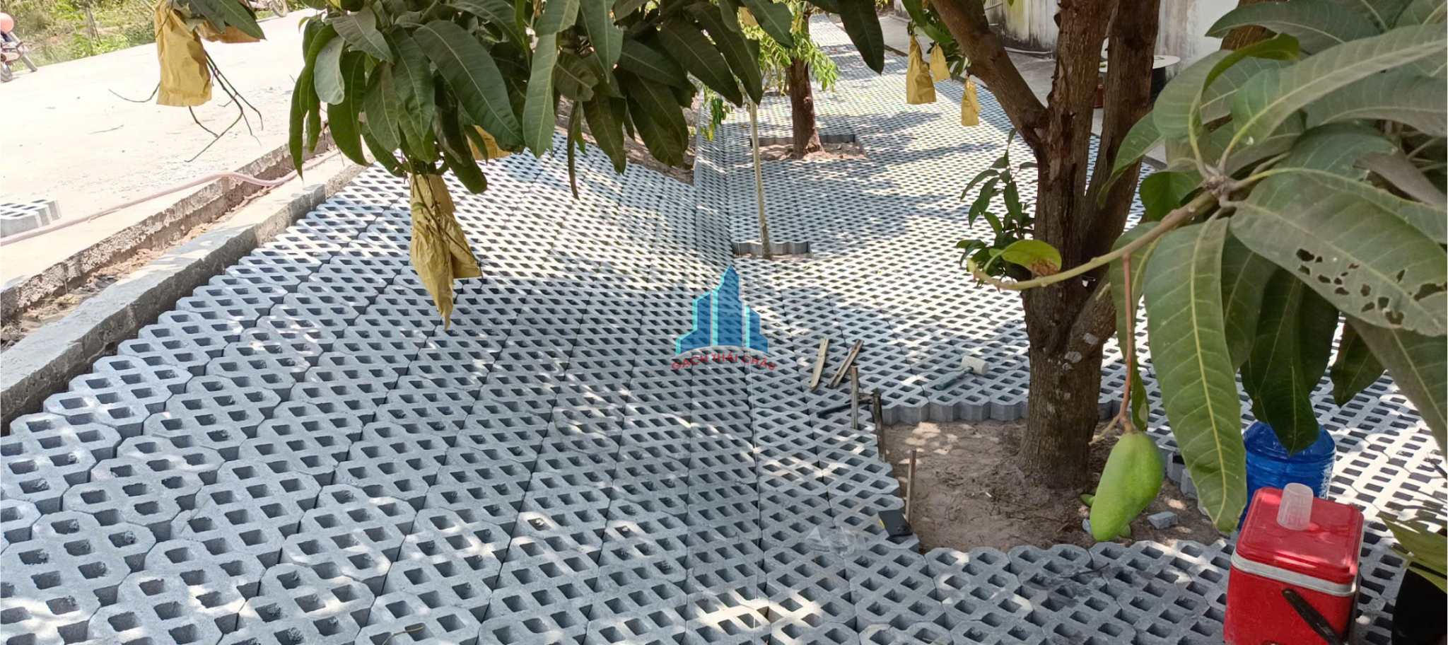 Công trình gạch trồng cỏ 8 lỗ dùng để lát sân vườn