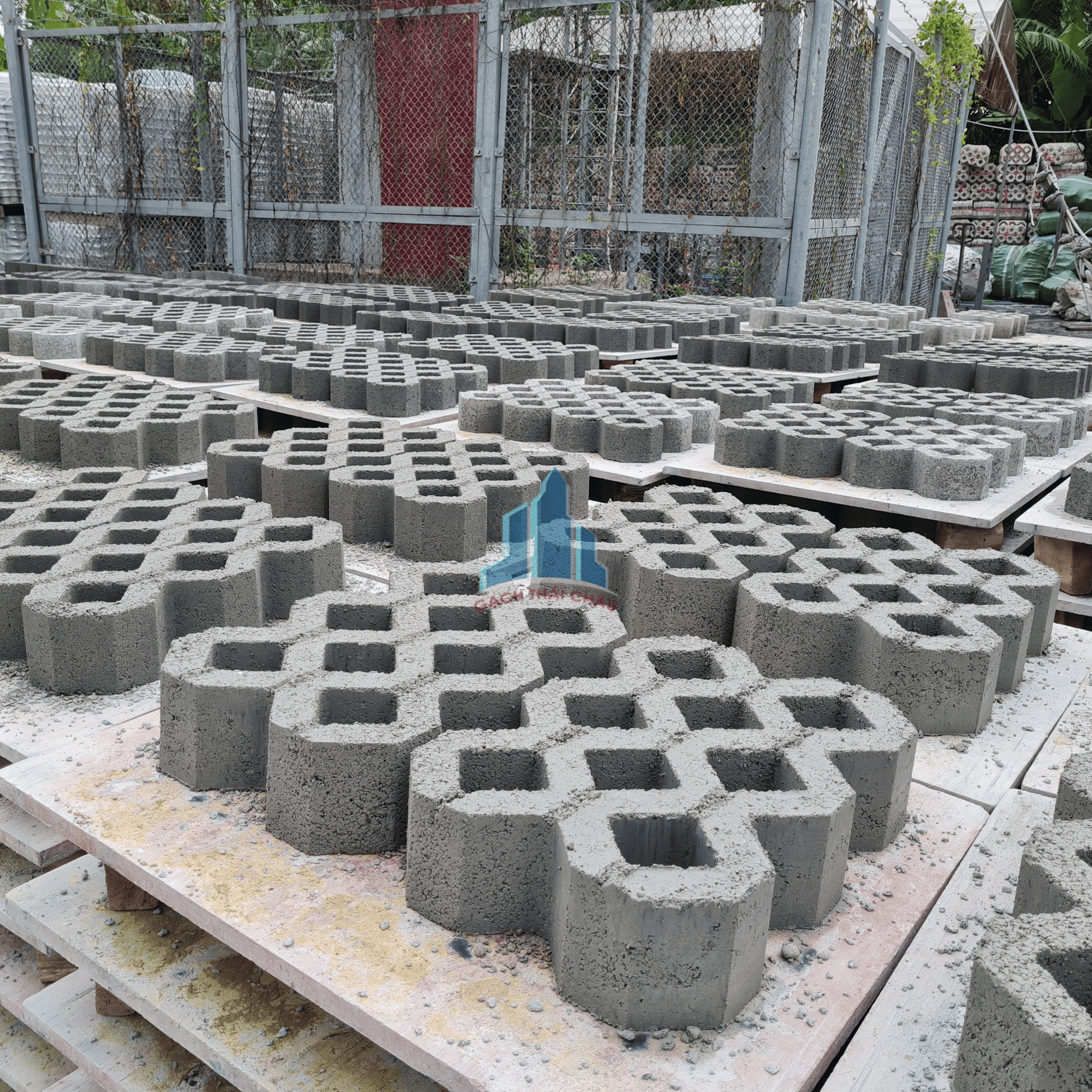 Kiện gạch trồng cỏ 2 lỗ trước khi giao tới công trình