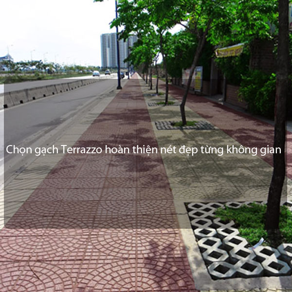Loại đa màu thì có giá thành cao hơn, nhưng mang lại một vẻ đẹp sinh động và bắt mắt. Loại đơn màu giá thành rẻ hơn, mang lại sự đơn giản nhưng tinh tế và sang trọng. Gạch lát vỉa hè terrazzo cực kì đa dạng về hoa văn với hàng trăm kiểu khác nhau. Khách hàng có thể lựa chọn những mẫu sẵn có hoặc có thể yêu cầu mẫu riêng. Hiện nay, gạch lát vỉa hè terrazzo hiện nay được dùng cho các công trình vỉa hè đường, lát sân nhà, sân để xe hơi, lát công viên, sân trường học, sân nhà thờ, đền chùa, resort, khu đô thị, khu dân cư, nơi sinh hoạt công cộng, bể bơi, khu chung cư, …