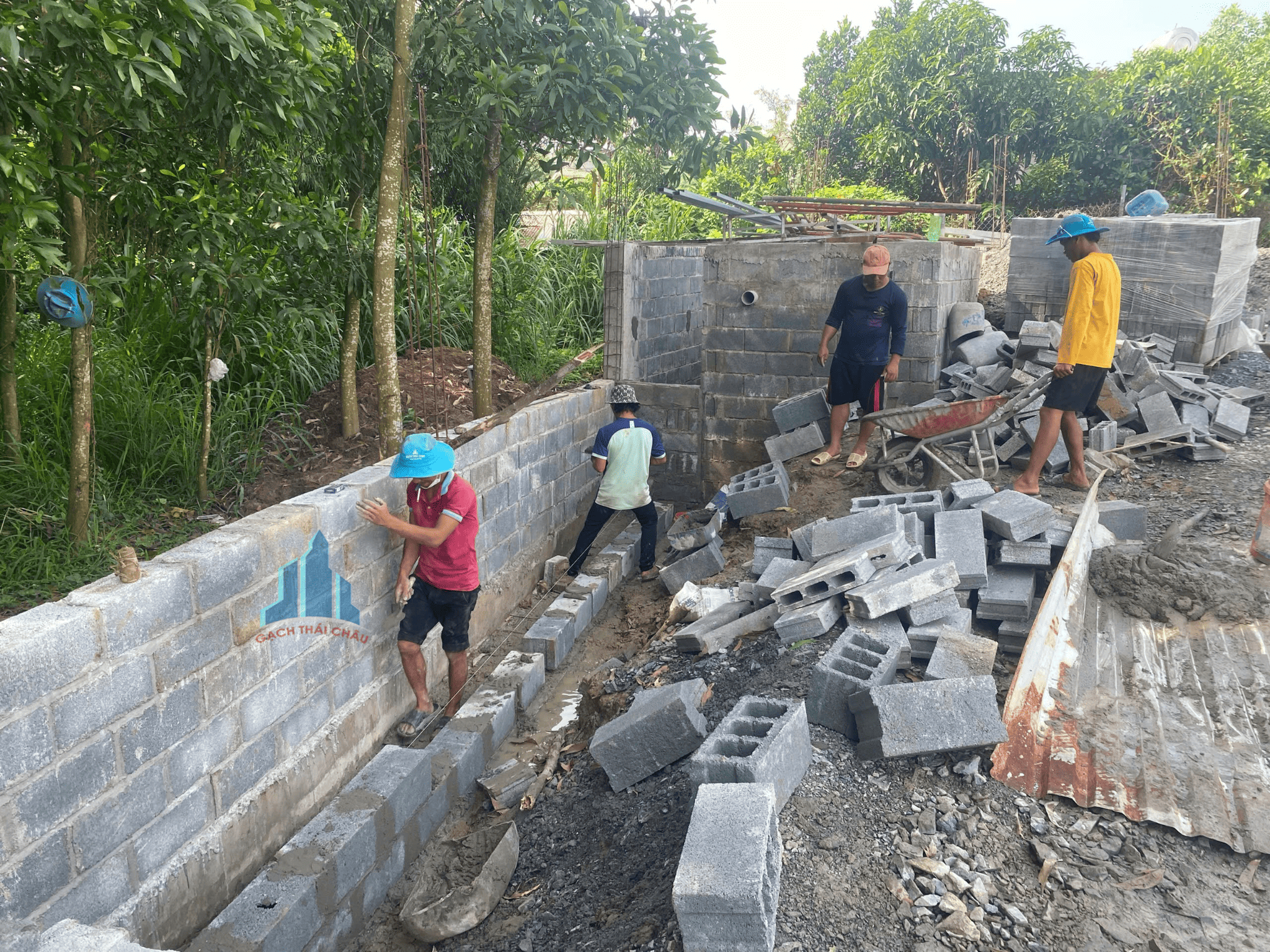 Công trình xây tường 20 bằng gạch block 19x19x39