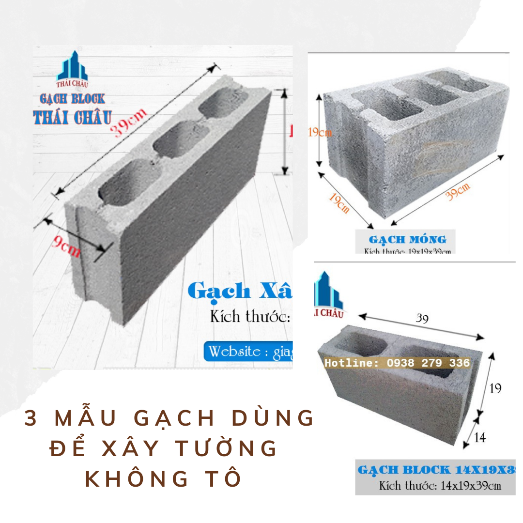 Thông thường có 3 loại gạch block thông dụng dùng để xây tường không tô. Loại đầu tiên là gạch block 9x19x39 được sử dụng để xây tường dày 10cm. Kích thước gạch này có bề dày viên gạch là 9cm, chiều dày của viên gạch khi xây lên cũng chính là chiều dày của bức tường xây. Chính nhờ chiều dày là 9cm nên gạch block 9x19x39 được sử dụng rộng rãi trong các hạng mục xây tường dày 10, dùng để phân không gian giữa các phòng, xây tường rào. Loại thứ 2 là gạch block 14x19x39 được sử dụng để xây tường 15. Nhờ có chiều dày 14cm, kích thước gạch block này rất thích hợp để xây tường dày 15 trong các hạng mục nhà vệ sinh, phân không gian nhà xưởng, máy móc. Loại thứ 3 là gạch block 19x19x39 được sử dụng rộng rãi trong các hạng mục xây tường 20. Gạch có chiều dày 19cm nên các công trình cần xây tường 20 như tường bao quanh nhà để chống mưa chống nắng, xây móng tường, xây tường chắn đất rất thích hợp sử dụng loại gạch này.