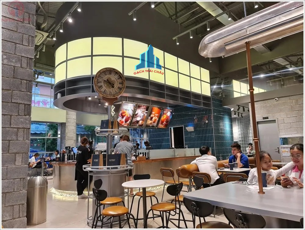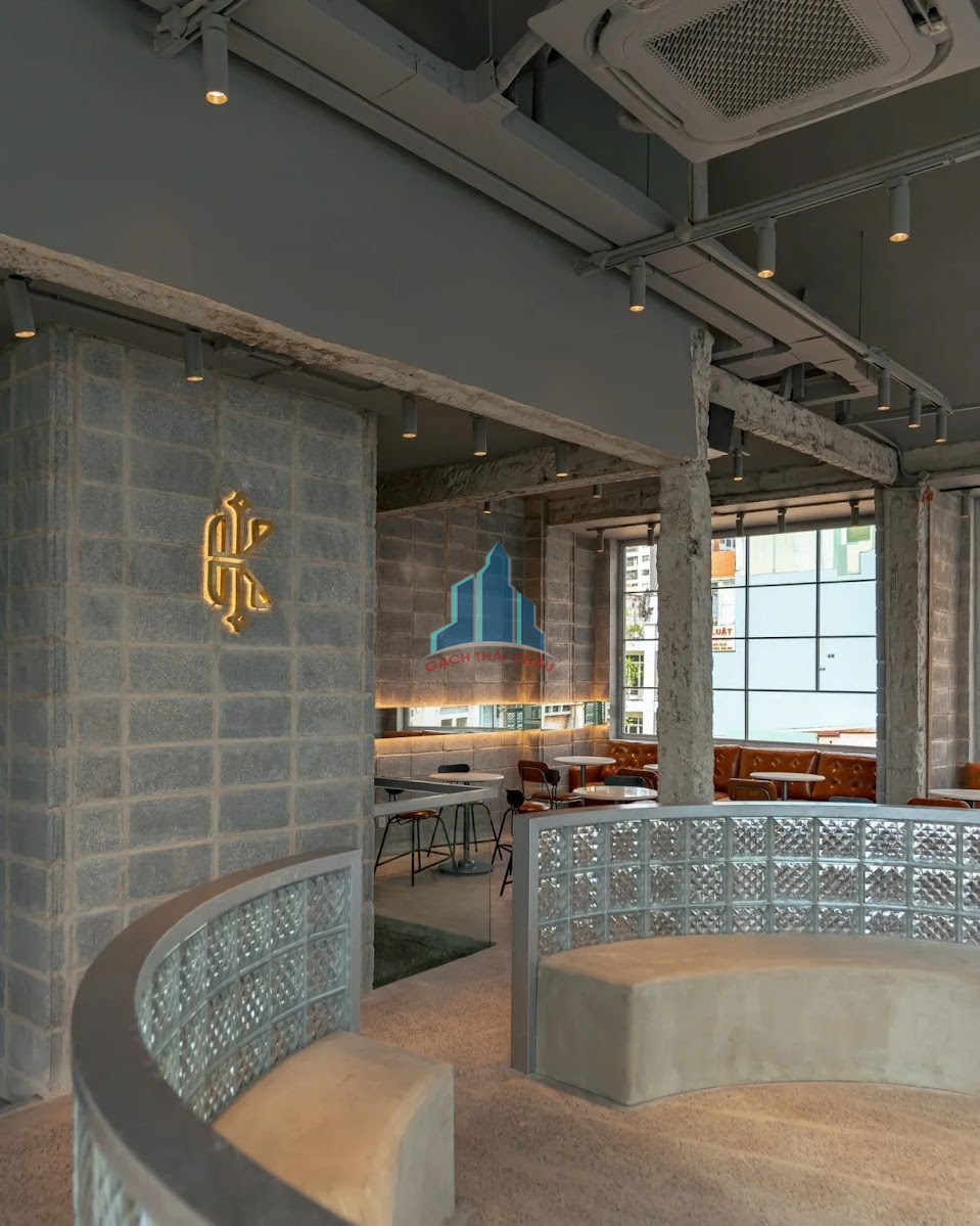 + Tường gạch block không tô trong quán cafe Katinat: