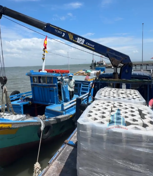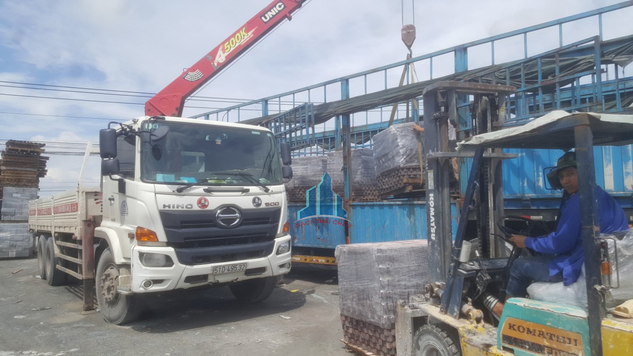 Gạch vỉa hè con sâu được vận chuyển bằng xe cẩu chuyên dụng