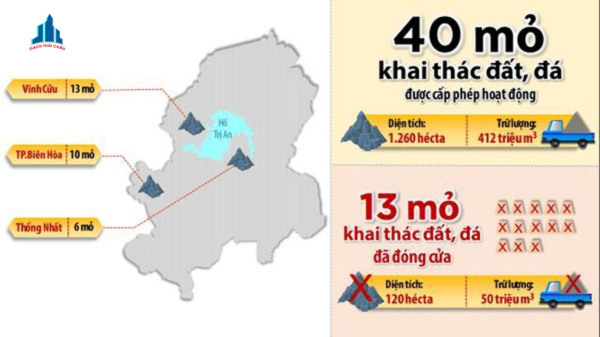 Vị trí các mỏ đá lớn ở Đồng Nai