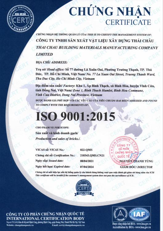 Giấy chứng nhận quản lý chất lượng ISO 9001:2015