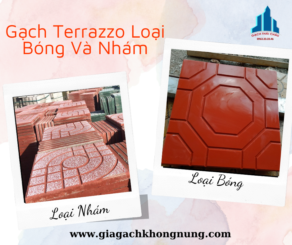 Gạch Terrazzo có 2 loại là gạch đã mài và gạch chưa mài. Gạch vỉa hè Terrazzo chưa mài thì có bề mặt nhám, phù hợp với các công trình có yêu cầu đặc biệt về độ an toàn. Ngược lại, gạch terrazzo đã mài có bề mặt nhẵn bóng, phù hợp với các công trình yêu cầu cao về tính thẩm mỹ. Về kích thước gạch Terrazzo , phổ biến nhất là kích thước 400x400x30mm. Cũng có gạch Terrazzo kích thước 300x300x25mm và 500x500x33mm nhưng ít phổ biến hơn. Số viên tương ứng cho mỗi m2 lần lượt là 6,25 viên (loại 400x400), 11,1 viên (loại 300x300) và 4 viên (loại 500x500). Sau đây là một số thông số kỹ thuật của gạch Terrazzo: