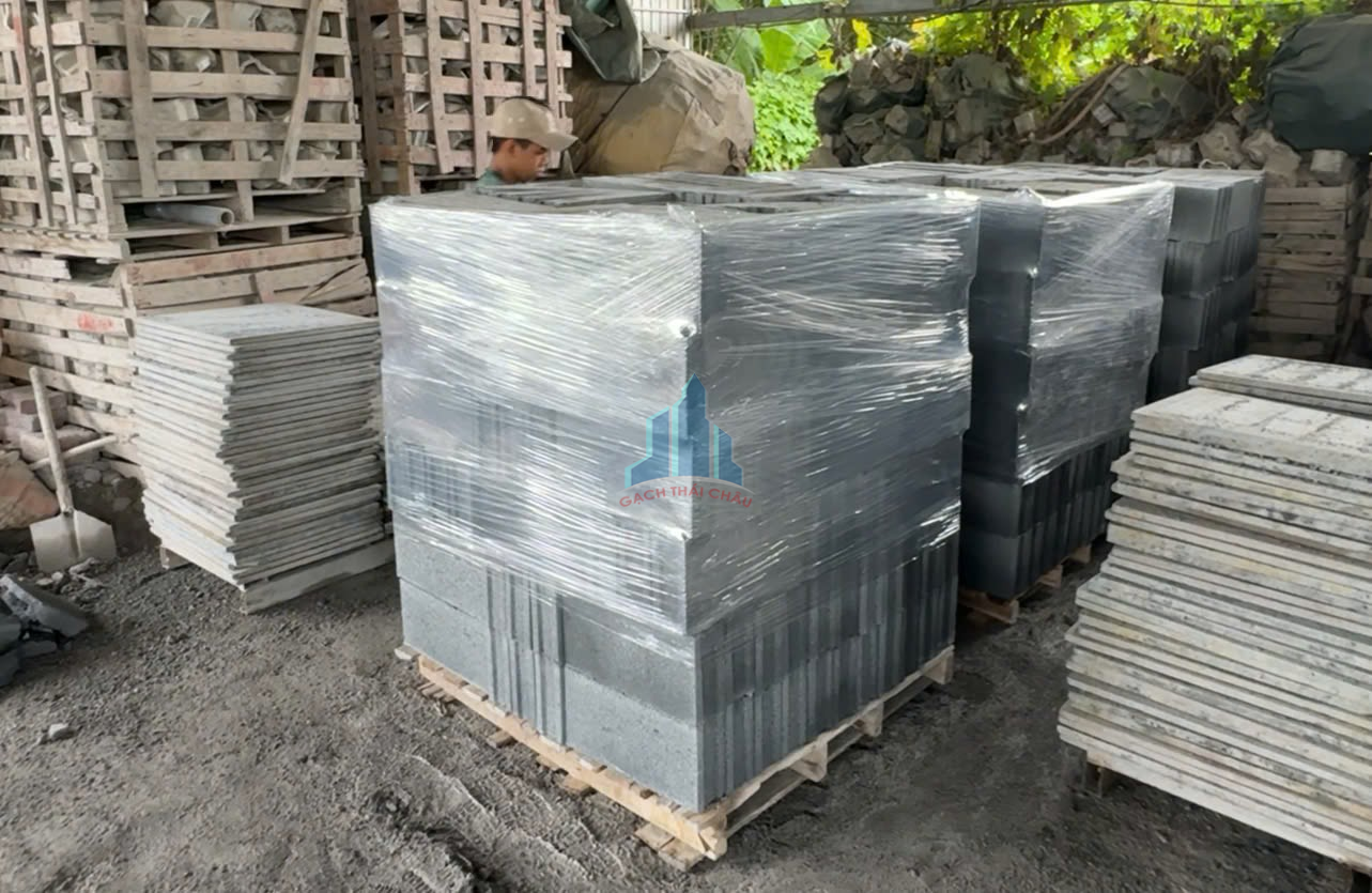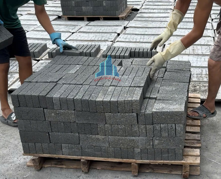 Sau khi gạch không nung trải qua thời gian bảo dưỡng thì sẽ được xếp gọn lên pallet, quấn màng và giao đến công trình. Với kích thước gạch là 9x19x39 thì một pallet gạch có thể xếp tới 6-8 lớp với tổng là 176-200 viên gạch. Mỗi một lớp gạch sẽ được xếp xen kẽ theo chiều ngang và chiều dọc nhằm tạo nên cấu trúc ổn định. Cách xếp này giúp phân bố trọng lượng đồng đều và gia tăng sự vững chắc của pallet gạch.