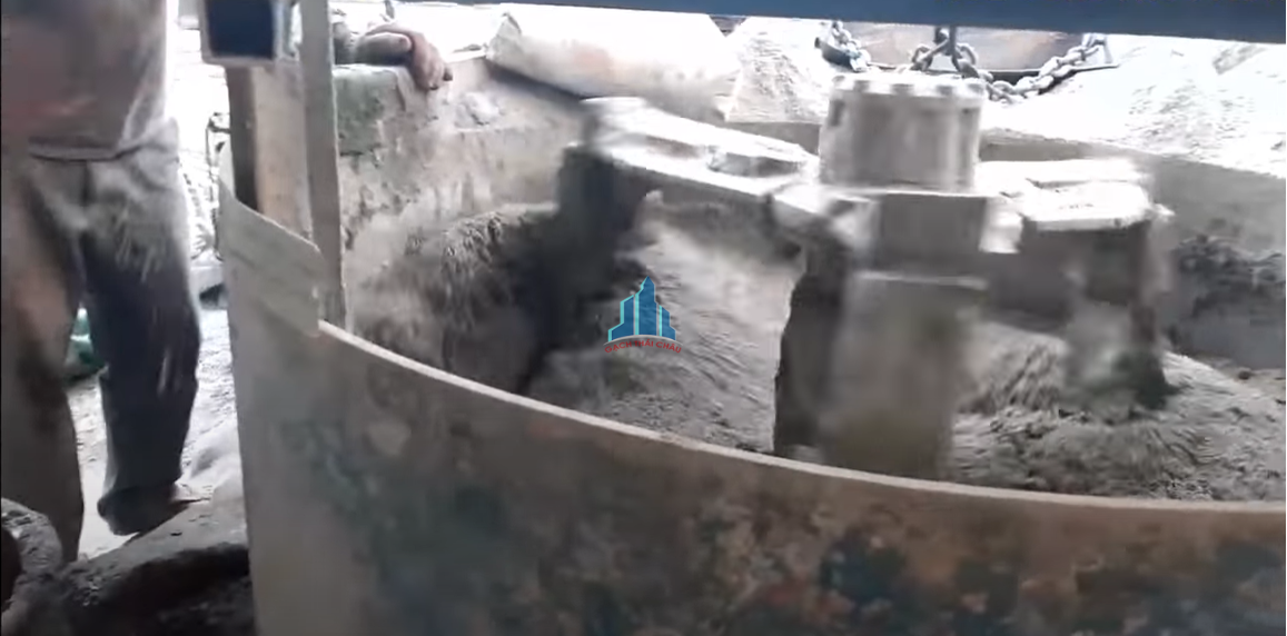 Thời gian trộn, tính từ lúc cho đủ nước vào máy, màu đỏ 25 phút, màu vàng và màu xanh từ 35 đến 40 phút. Sau khi trộn xong, hỗn hợp sẽ được xả xuống xe liệu màu và đưa ra vị trí máy tạo hình.