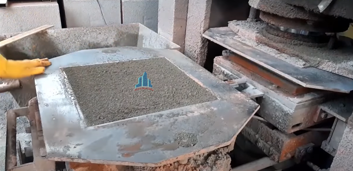 - Đưa nguyên liệu vào khuôn và tiến hành rung: