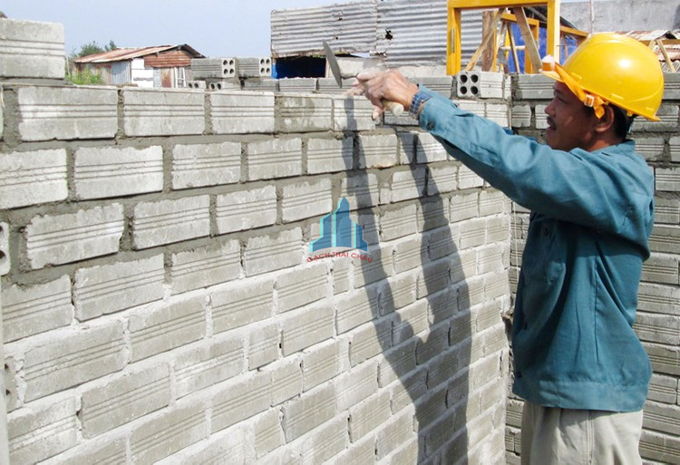Xây tường bằng gạch không nung 4 lỗ