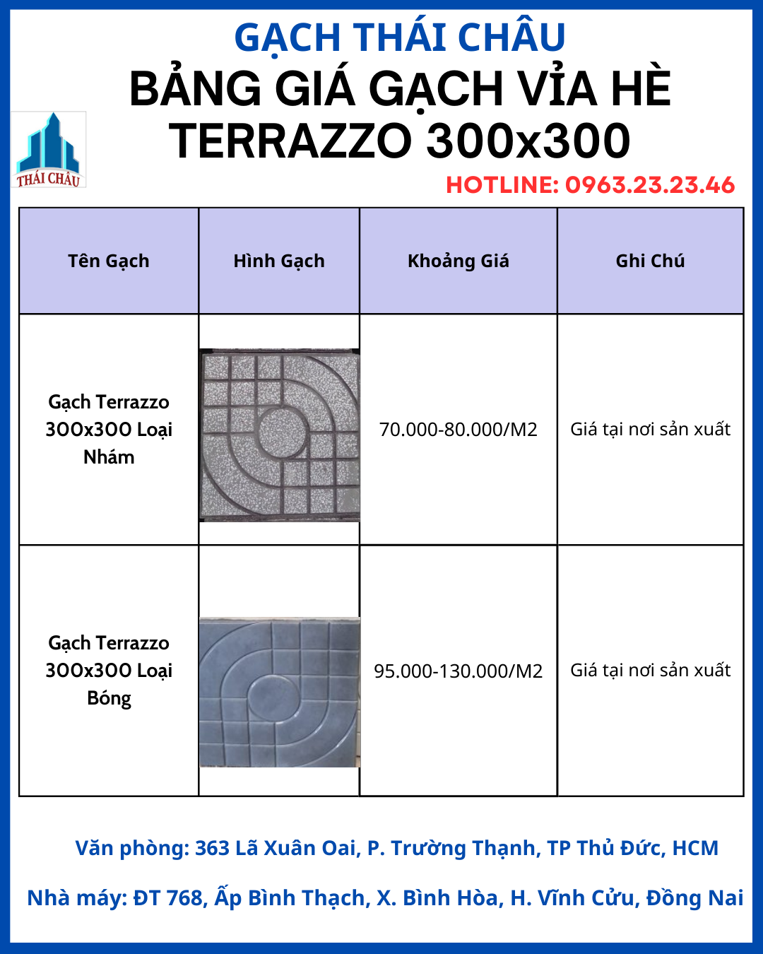 Gạch terrazzo 300x300 là loại gạch lát vỉa hè được sử dụng rất phổ biến cả ở những dự án dân dụng đến những dự án có nguồn vốn nhà nước. Điển hình là một trong những dự án lớn nhất tại phía Nam là dự án Vinhome Grand Park quận 9 đã sử dụng toàn bộ vỉa hè nội khu bằng gạch terrazzo 300x300. Vậy câu hỏi đặt ra là tại sao gạch terrazzo 300x300 lại được tin dùng ngày càng phổ biến nhiều như vậy, ưu điểm nổi bật của dòng gạch này là gì và chúng ta có nên sử dụng gạch terrazzo 300x300 cho công trình của mình hay không? Hãy cùng giải đáp ngay trong bài viết này nhé!